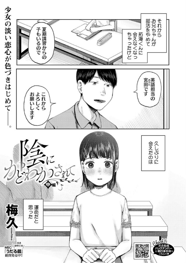 塾を早退した日、途中で気分が悪くなった莉子は自分に付き添ってくれた拓海に公園のトイレで介抱されていた。しかし、莉子の涙でくしゃくしゃになった表情に欲情した拓海に無理矢理犯●れてしまう。その後、別れ際の拓海の言動に莉子は混乱しながらも、母に促され塾に行くことに。教室で拓海から渡されたプリントに「授業のあと話したい」とメモが付いていて──。