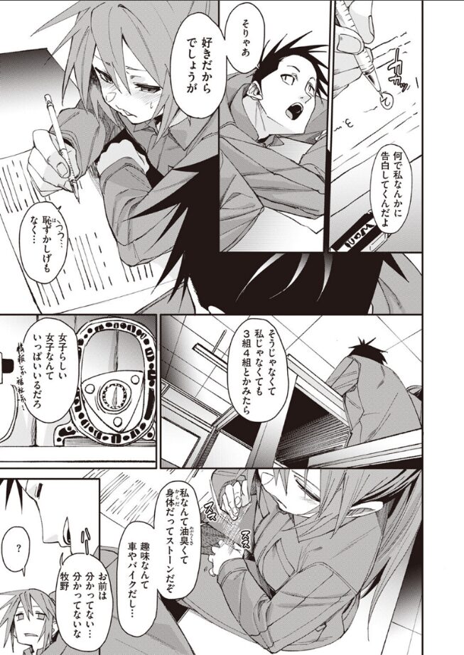 (そんな目でみんなよ……逃げられなくなるだろ……)同級生の牧野(まきの)に7回告白してフラれている村田(むらた)。「私なんて油臭くて身体だってストーンだぞ。趣味なんて車やバイクだし……」なんて牧野は言うけれど、彼女の性格や身体も含めて好きな村田には関係なし!!8回目の告白もフラれてしまったが、それでも諦めない村田に彼女の態度も変わってきて!?ビンカン微乳のツンデレヒロインが一途男子に愛されまくってのけ反り絶頂♪