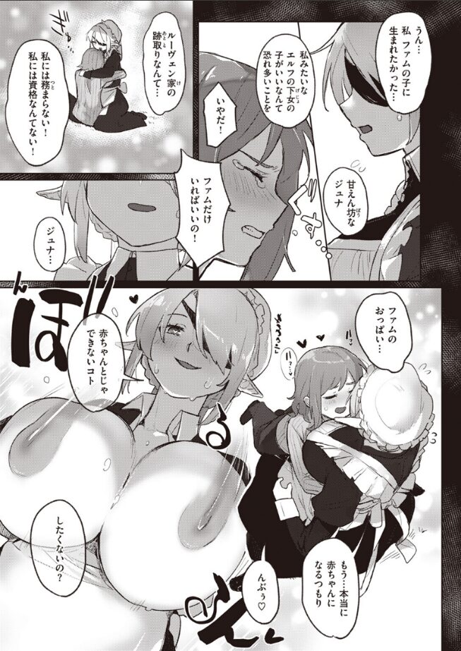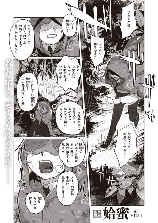 「ジュナ。呪いの森で甘い匂いを嗅いでも、絶対一人で近づいちゃだめよ」とある真夜中、先に館から逃げ出したエルフメイドのファムルを追いかけ、追っ手から逃げるように《迷いの森》に立ち入ったジュナク。なんとか撒くことに成功したジュナクは、喉の渇きを潤すために樹に実っていた《女の乳房のような果実》を食べることに。しかし、それは過去ファムルから教えられていた。エルフも恐れる《人喰いの樹》の果実で……。弱ったところをつけ入れられ、触手に身体を蹂躙され尽くす異種姦ハードファック。