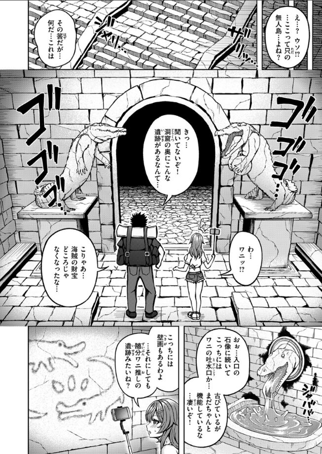 (気持ち良いトコ全部…っ♪ 発掘されちゃうぅ…♪)トレジャーハンターの力也(りきや)は宝探しのために訪れたある島で、美人動画配信者のMEGる(めぐる)と再会。島の遺跡の怪しい部屋に閉じ込められた2人は、SEXしないと部屋を出れない事を知り!?