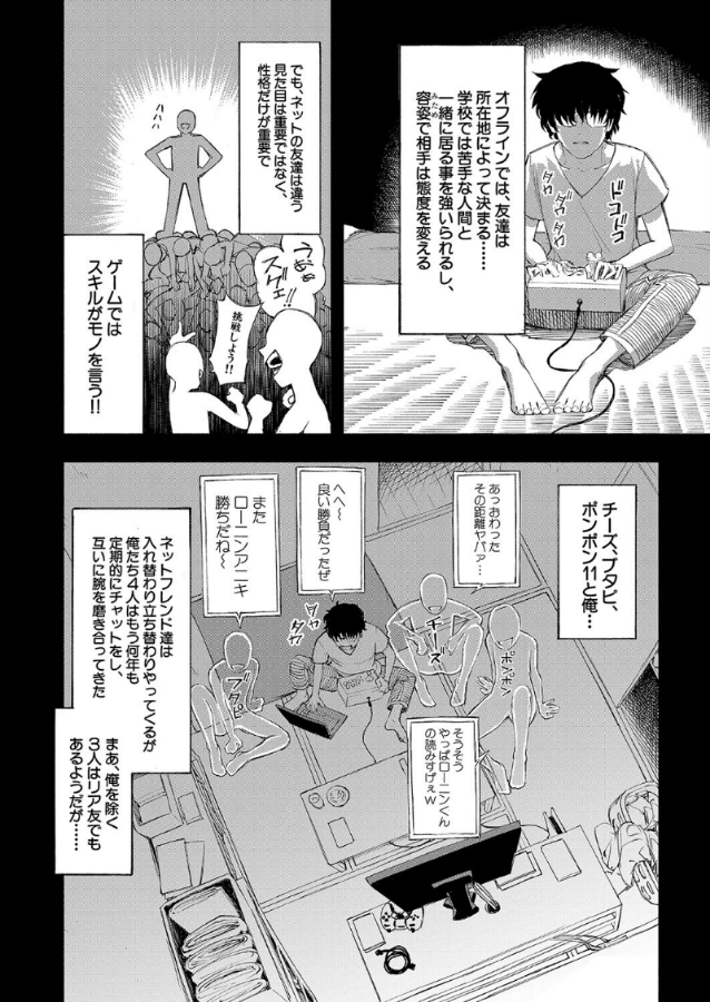 ギャルに苦手意識を持つ主人公は、3人のネット友達と長年一緒にゲームの腕を磨いてきた。ある日、地元で行われるeスポーツ大会に出場する為、3人のネット友達と実際に会って練習をすることになる。だけど初めてオフであった友人は3人ともギャルで……!?