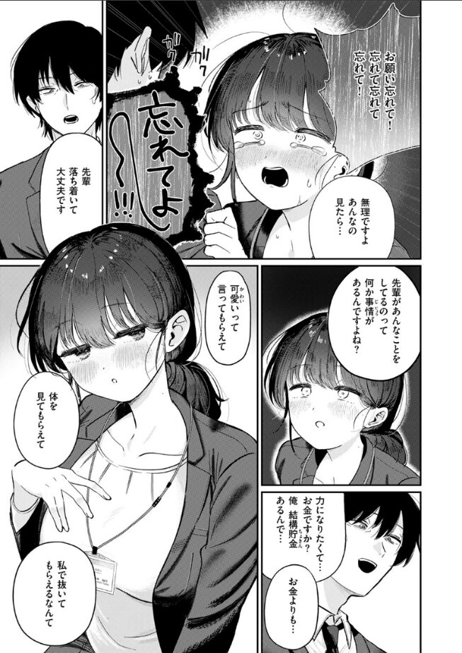 いつも優しくて仕事もできる、大好きな会社の先輩が……エロ配信者だったなんて。彼女はなんでそんなことを?そんなことはしない清純な女の人だと思ってたのに、裏切られた、裏切られた、裏切られた……!!一方的な愛は暴走し、そのぶつかる先は……。