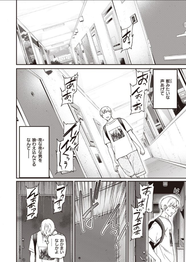 「こ、ここ……にください。お、おち●ちん……」見た目は地味で陰キャの極み。だけどカラダつきはエロく胸も大きい。そんな隣室の女性の部屋から、夜な夜な激しい喘ぎ声が聞こえてくる。それもケダモノのような野太い喘ぎ声だ。そしてある日知ってしまった、彼女のフシダラな素顔を――。