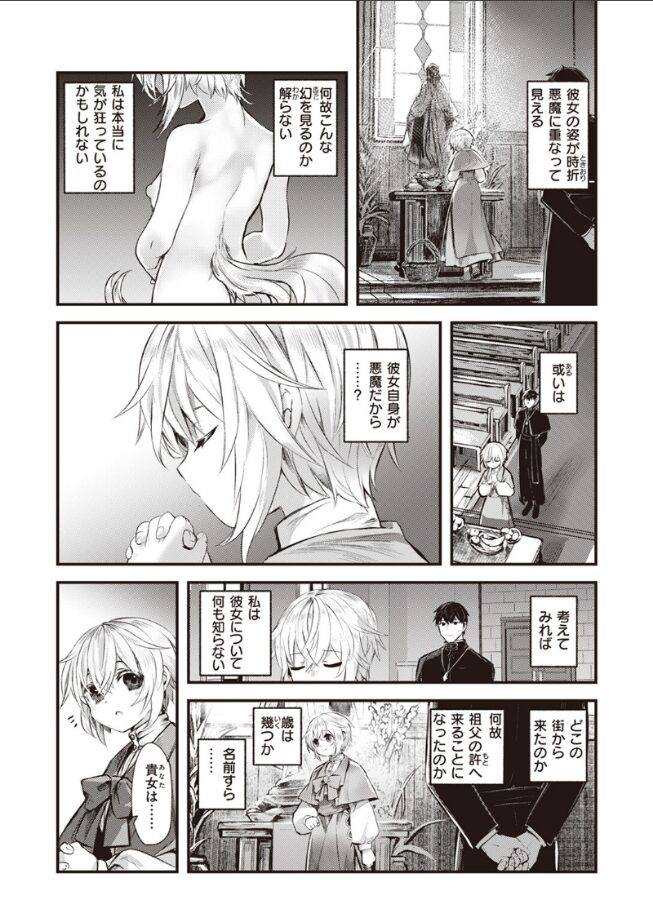 「神父なのに悪魔と姦淫しちゃったね。気持ちよかった?」あの日以来、淫らな夢に苛まれ続けている神父。理性と欲望の狭間に揺れ、もう自分でもどうすれば良いのかわからなくなっていた矢先……彼のもとへ再び試練が訪れる。夢か現か、信仰か淫犯か――現れた少女を前に欲望の火が燻っていく。