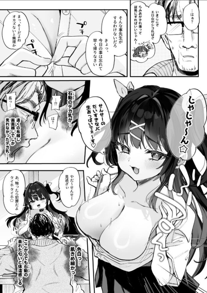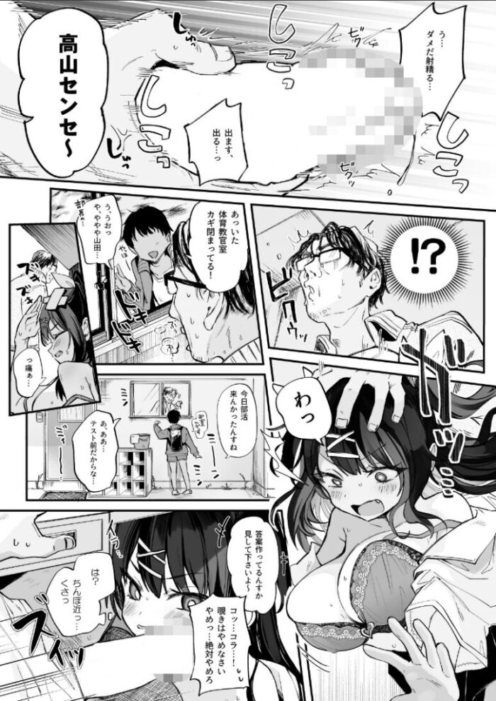 2024年夏コミの新刊です。冴えない童貞体育教師「高山高史」は女子更衣室の盗撮をするのが趣味だった。それが頭はバカだが実家が太く、恵まれた容姿を持つ「石動らみあ」にバレてしまった。見た目はよくても中身は最悪のコイツに狙われたが最後、俺をクビにするための証拠集めにあの手この手で誘惑してくるのだった。絶対にこんなバカガキに負けない!性欲と人生を天秤に掛けてシコります。【内容】見抜き、フェラ、素股、騎乗位、乳首攻め(女)などパイズリが描けなかったので次回以降に描きます…!頭の悪い同士のセックスで基本的に和姦よりです。