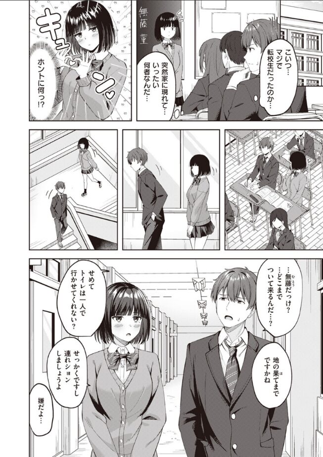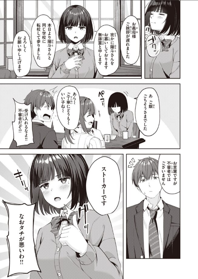「私と性行為をしましょう」陽斗(はると)をストーキングする謎の転校生・菫(すみれ)。学校から部屋まで粘着され、陽斗の好みまで知り尽くした菫にパイズリされた陽斗は遂に菫の罠にかかる!?