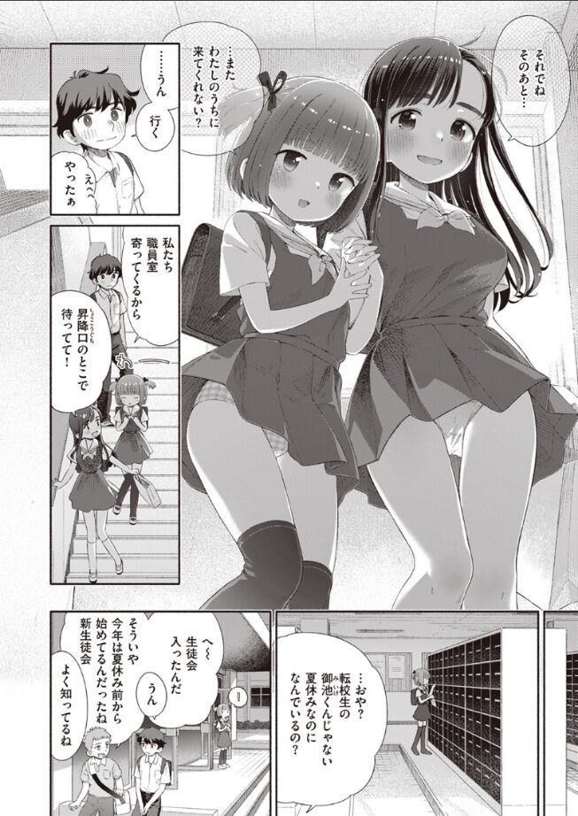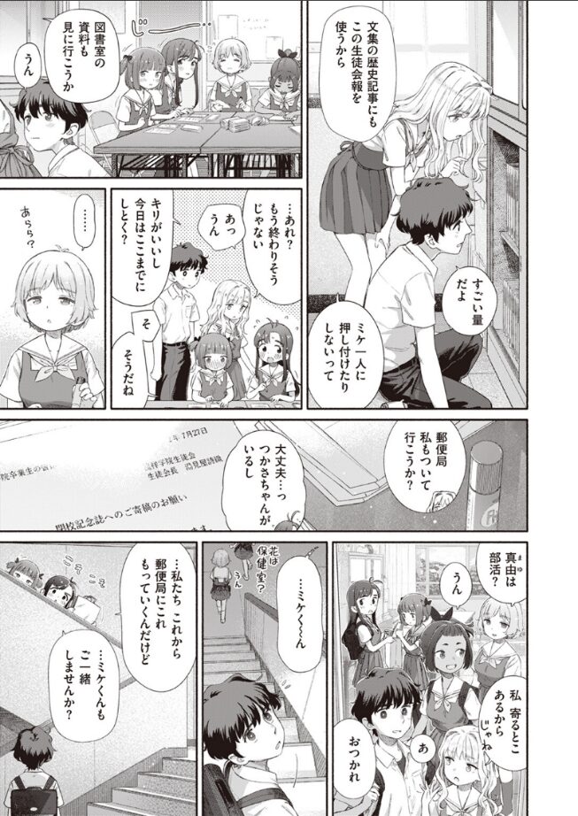 「実はね、今日三人でわたしの家でえっちする予定だったんだ」巨乳生徒会長・詩織(しおり)と小柄な副会長・つかさは、転校生で唯一の男子生徒会メンバーのミケくんと勢いのまま三人で初体験を迎えた。あの快感を忘れられない詩織とつかさは、再びミケくんを誘う。そんな折にクラスのお調子者男子・塩沢くんに声をかけられて――。カラオケで制服のまま別々の部屋で……♪ 隠した恋心に揺れるドキドキのスワッピング。