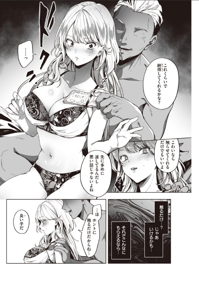 「お小遣いもうちょっとくれたら もっかいしてもいいよ…?♪」巷でよく聞くパパ活を始めたギャルの夢乃(ゆめの)。最初はちょっと怖いと思っていたけど、気前のいい当たりパパに出会えてラッキー!そう思っていた矢先、起きたらベットの上!?エッチなことをするつもりはなかったのに、触るだけだからと言われ、おじさんのテクで段々気持ちよくなってきちゃって……。