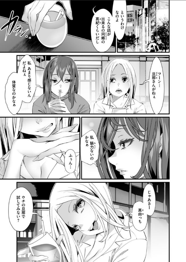「じゃあさー ウチの旦那で試してみない?」SEX中、旦那が中折れし不完全燃焼の日々を過ごす人妻の真由(まゆ)。自分自身も不感症かもしれないと同郷の真紀(まき)に相談すると、自分の旦那で試してみないかと提案される。真紀の夫とSEXし、イキ乱れる日々を送る真由だったが、実はこのことが旦那にバレていて……。