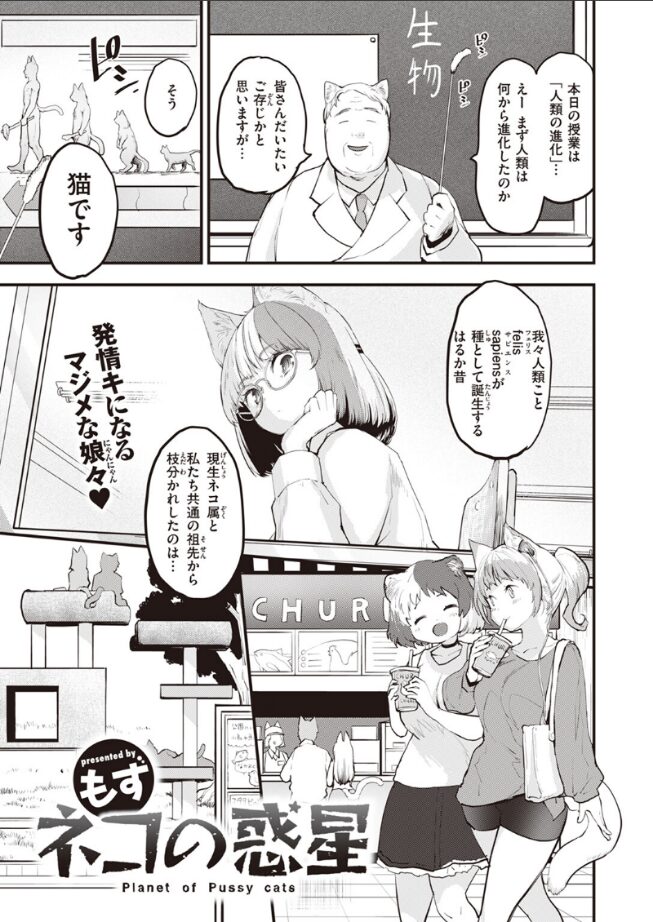 《猫》が人類に進化した世界。その日学校の授業で習ったのは《発情期》について。頭がぼんやりしたり、熱っぽかったり風邪でもないのになんだか火照っておかしくなってしまう…。生徒会の三ヶ山(みかやま)さんは今まさに《発情期》真っ最中。そんな時に、大好きな後輩書記の黒崎(くろさき)くんに触れて匂いを嗅いでしまったものだから、もう我慢ができず……!《猫》の人類世界で繰り広げられる、激しく甘美な性行為模様……!!
