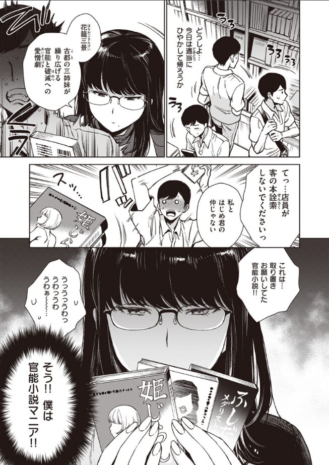 「私から艶っぽい言葉が出てびっくりした? 私も官能小説好き」行きつけの本屋さんにいるのは、いつもの店長ではなく……店長の孫のコトネさん。オトナの魅力を放つメガネ美人さんで、昔から憧れている近所の憧れのお姉さんだ。そんなコトネさんが、実はとってもドスケベだったとしたら……!?取り置きしていた官能小説が暴くコトネさんの意外すぎる顔。普段の姿からは想像できない淫語の洪水に興奮も止まらない!! 水音たっぷりのベチャベチャSEXをお楽しみください!!